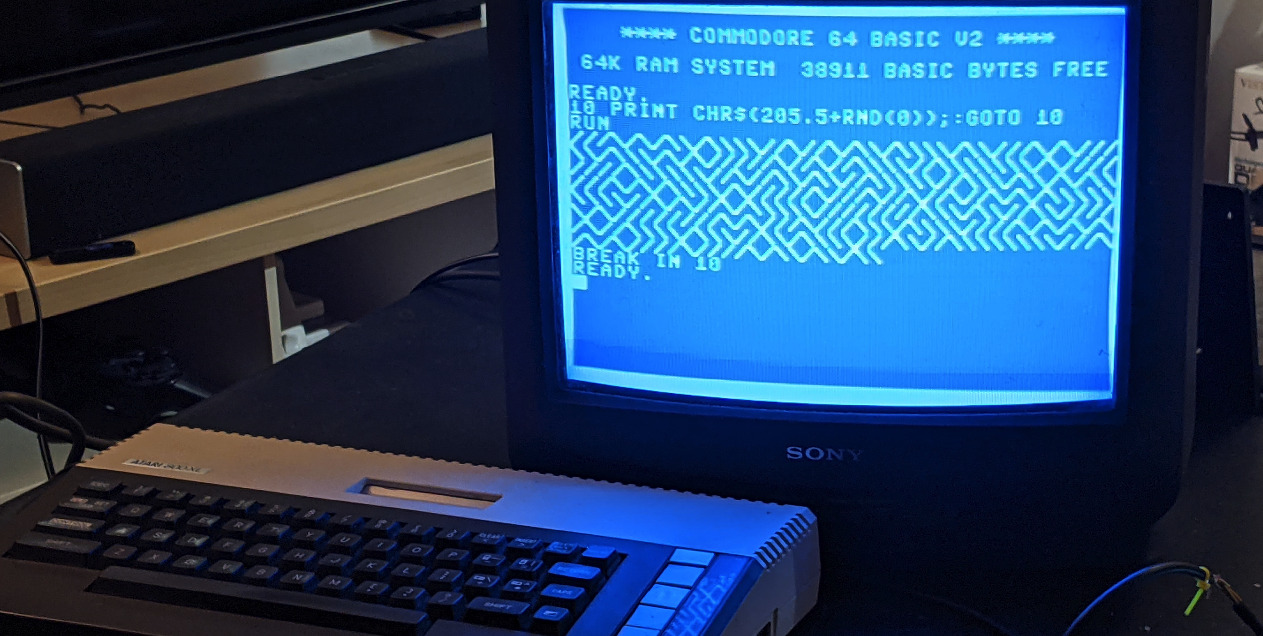 Commodore 64 OS running on Atari 8-bit hardware. They are practically the same machine (beside audio chip and some minor quirks).